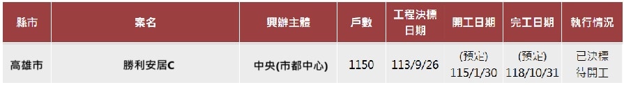高雄勝利小造鎮國家住都中心高雄勝利安居C社宅統包工程決標